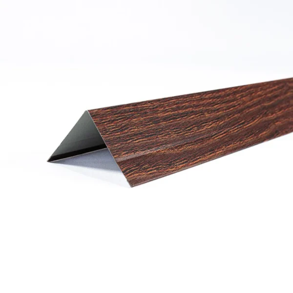 Especialmente creado para esquinas interiores de muros con revestimiento metálico, este perfil imitación madera garantiza transiciones suaves y elegantes. Ayuda a proteger las aristas contra golpes y humedad, proporcionando un acabado uniforme y de diseño. Perfecto para proyectos de interiores que requieren un esquinero decorativo que mantenga la estética de la madera.