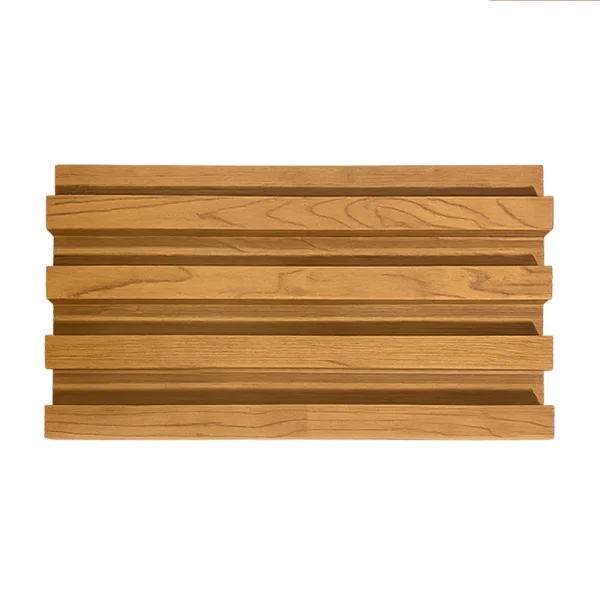 Revestimiento decorativo de WPC (Wood Plastic Composite) que imita la textura de la madera y aporta un efecto 3D a muros y cielos. Ideal para renovar interiores con un estilo contemporáneo, este panel es resistente a la humedad, al ataque de insectos y conserva el color en el tiempo. La fijación por ranura oculta permite una instalación limpia y sencilla. Es una opción sostenible y atractiva para quienes buscan paneles de pared tipo madera de alto impacto visual.